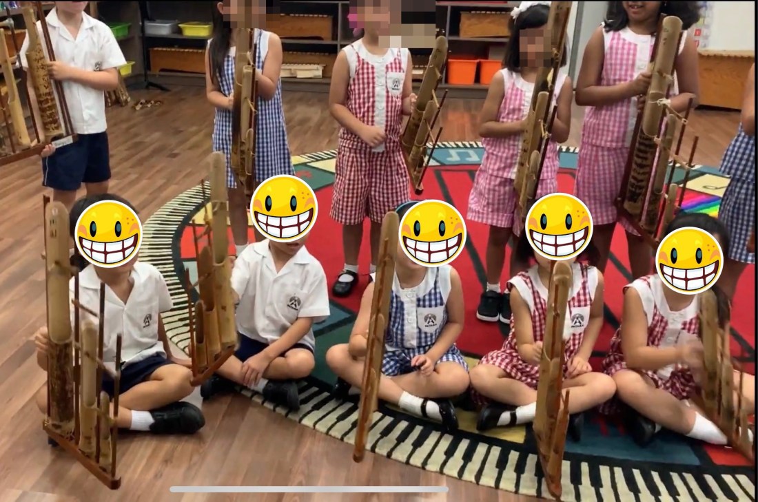 After singing, showing pitch direction and using a body scale, we used angklungs to play the number part of the song.