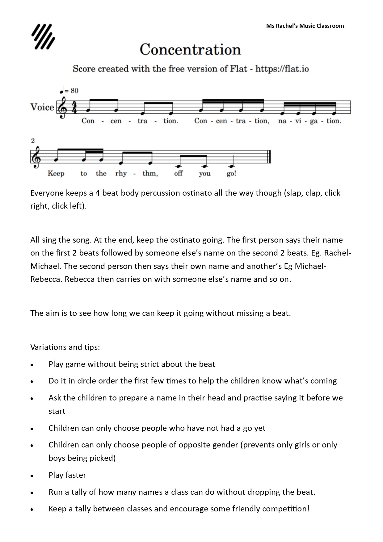 I am really bad with learning and remembering kids names in the early years. How can I get a printable version of these instructions and notation for “Concentration?”